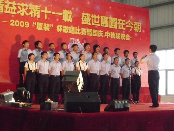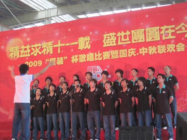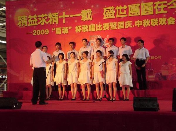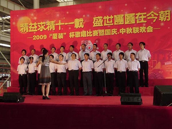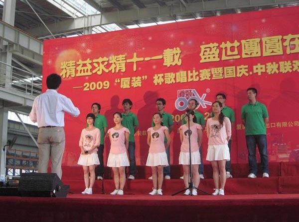 9月29日下午,2009年度“廈裝杯”歌唱比賽在廈裝公司總裝車間舉行。此次歌唱比賽以“精益求精十一載、盛世團(tuán)圓在今朝”為主題,賀祖國(guó)60周年華誕、喜迎中秋、慶祝廈裝成立11周年。公司及各部門從6月份開(kāi)始籌備此次比賽,此次比賽分為集體組和個(gè)人組,集體組(合唱)以部門為單位,最終有6支隊(duì)進(jìn)入當(dāng)天的決賽,個(gè)人組通過(guò)先前的部門推薦及預(yù)賽選拔,最終有11人闖入決賽。